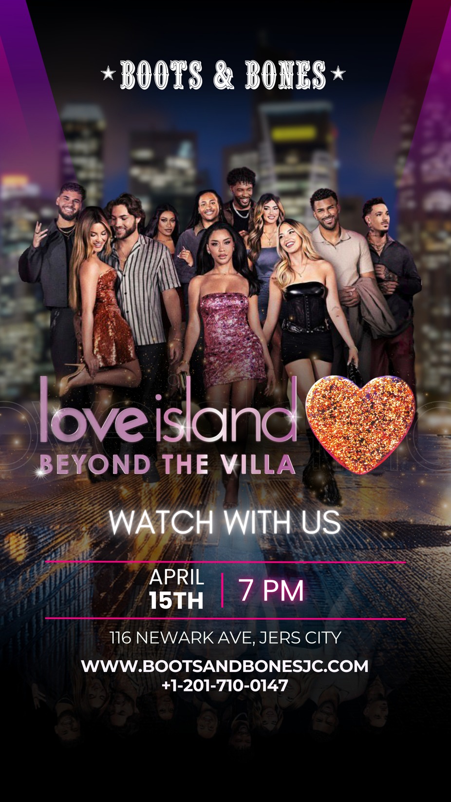 Join us at Boots & Bones for Love Island: Beyond The Villa — where the tea is hot, the cocktails are cold, and every moment is worth reacting to.